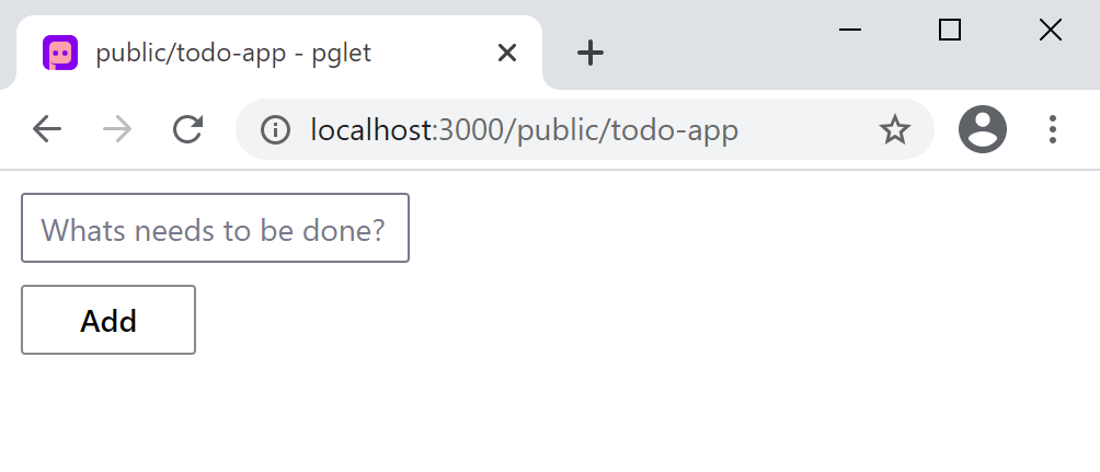 In the previous step, we learned how to create a simple Pglet page. On that page, all users work with the same contents ("shared app").
