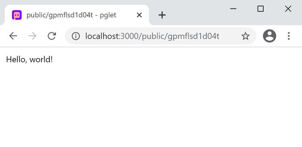 Please note that we have removed the name of the page from the call above, so it's generated randomly to avoid name collision on public Pglet service with other users.